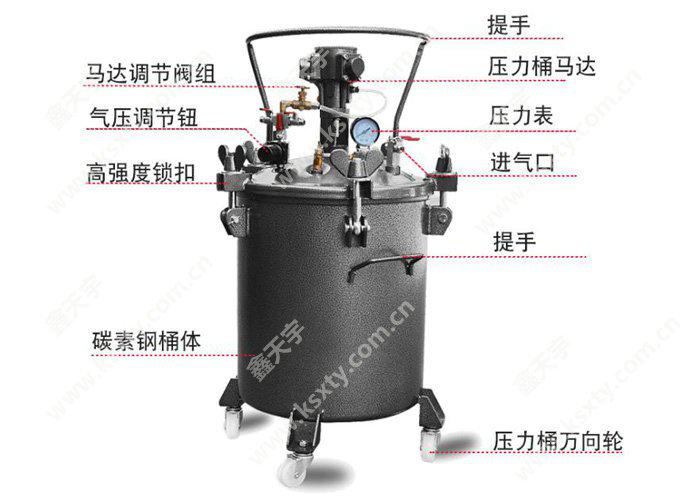 三豐壓力桶具有防腐蝕耐高壓特性。適用于油性涂料、脫模劑、膠水等其它常規液體輸送。