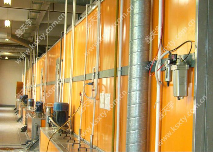 藥水通過噴淋對工件表面進行處理,由于噴射產生一定壓力工件表面能得到較好沖洗效果具有大批量連續作業之特點,但一次性投資相對較大藥水用量較大.適用于較長及簡單的表面處理。